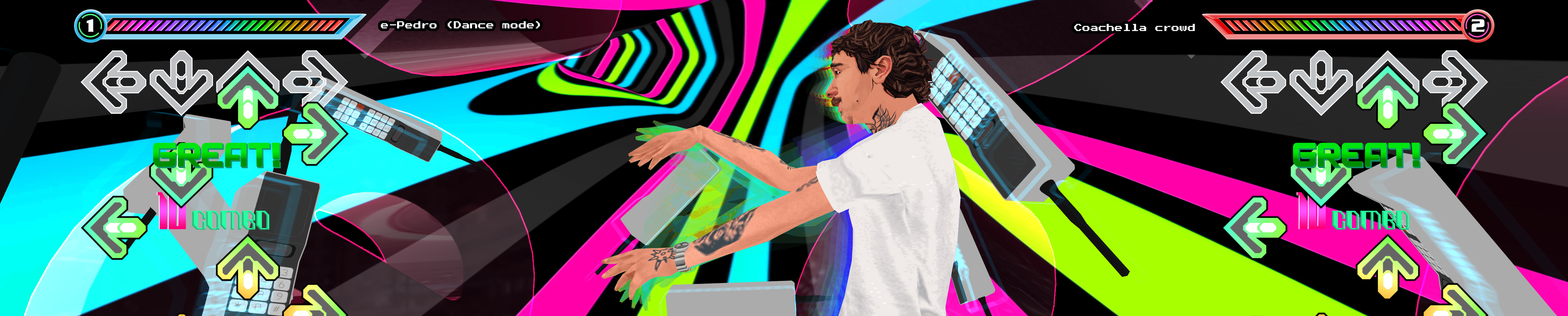 “Durante todo o processo de criação dos visuais, a gente queria construir um paralelo entre o Pedro (Mochakk) que todo mundo conhece no mundo real e o Pedro digital, que pouca gente conhece: o cara que joga e que passou horas e horas da infância na frente da TV com seu PS2. Claro que a escolha dos jogos não foi simples. O PlayStation 2 é o videogame mais importante da história e tem um monte de jogos incríveis, então, para fazer essa homenagem, a gente teve que selecionar jogos que o Mochakk gostava e que também combinassem com a estética do show”